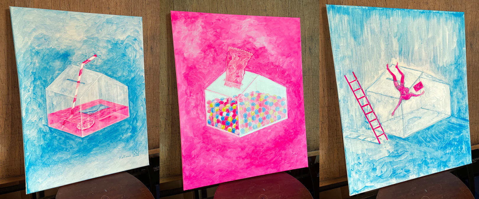 En dessin, en peinture, en volume, Mi casa es tu caso montre la même maison, dans la même perspective, altérée et indestructible. → Voir le projet