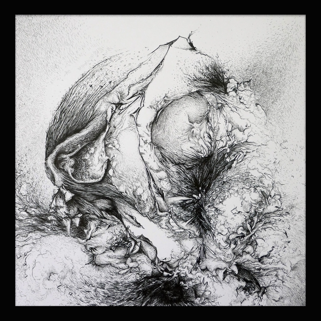 Ali - format 50x50 cm, encre noire sur papier dessin 160g, cadre bois chêne noir