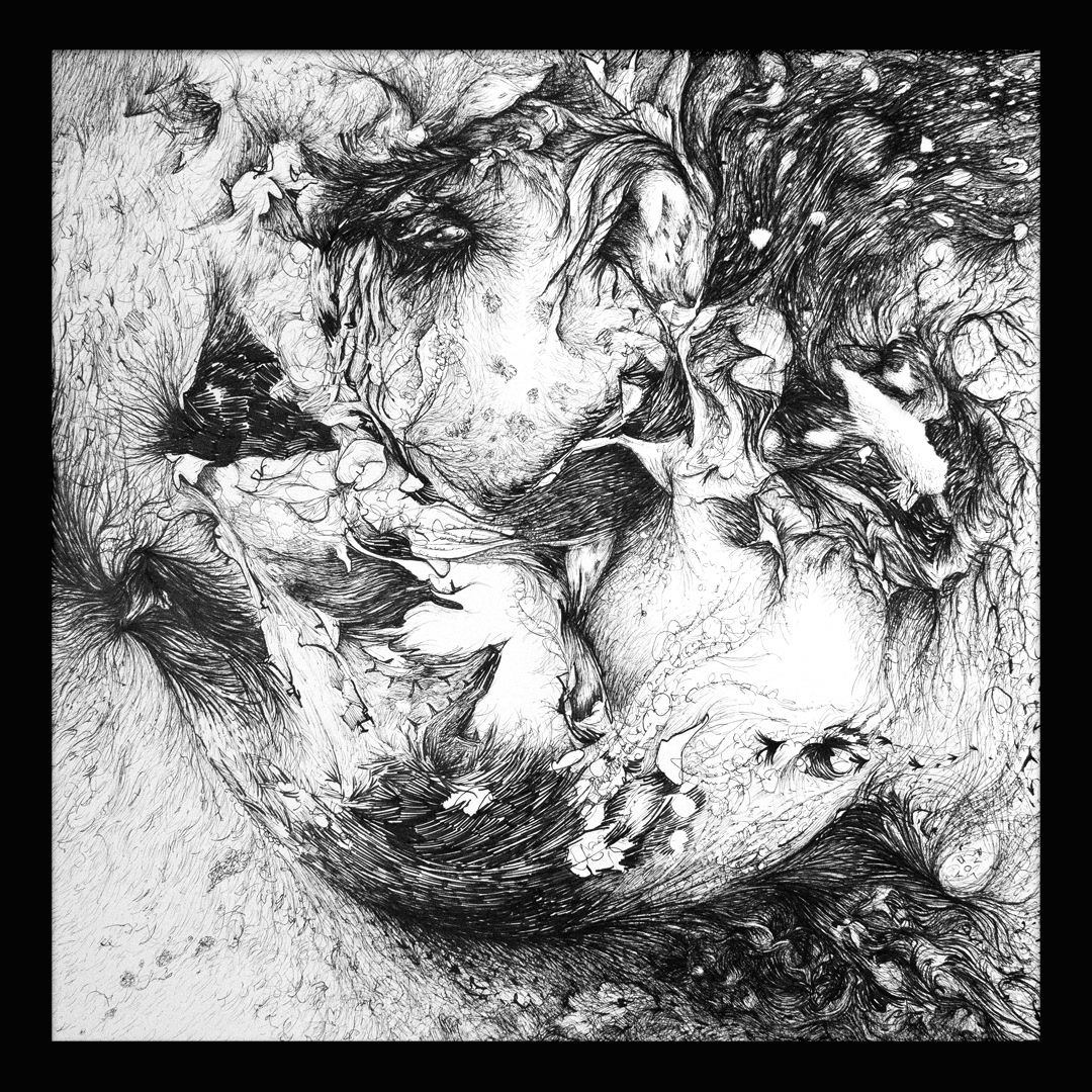 Bang - format 50x50 cm, encre noire sur papier dessin 220g, cadre bois chêne noir